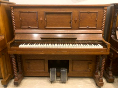 Piano merk eigendom van Decker Piano Co., gebouwd in eigen fabriek.
