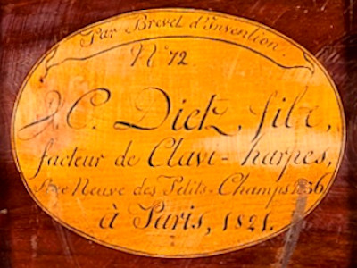 Startdatum productie in ± 1821 van de Dietz piano.