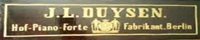 Piano merk eigendom van Jes Leve Duysen, gebouwd in eigen fabriek.
