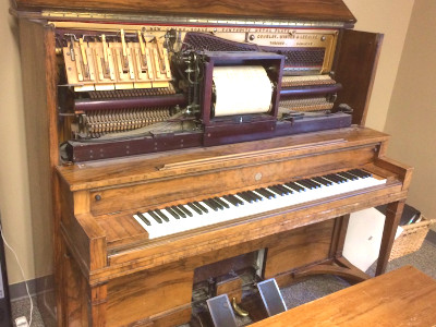 Piano merk eigendom van Gourlay, Winter & Leeming, gebouwd in eigen fabriek.