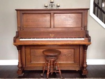 Piano merk eigendom van Hinze Piano Co., gebouwd in eigen fabriek.