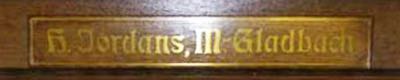 Piano merk eigendom van H. Jordans, gebouwd in eigen fabriek.