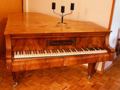 Piano merk eigendom van E. Mauder, gebouwd in eigen fabriek.