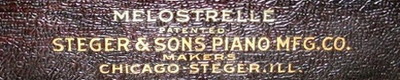 Piano merk eigendom van Steger Piano Mfg. Co., gebouwd in eigen fabriek.