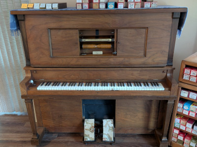 Piano merk eigendom van Baldwin Piano Company, gebouwd door Monarch Piano Co. in eigen fabriek.