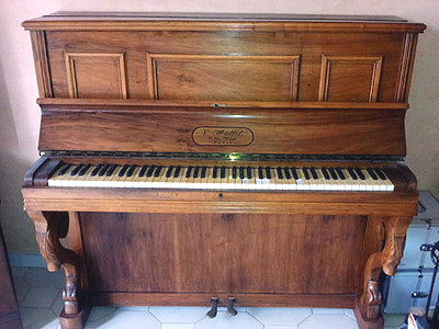 Piano merk eigendom van J. Mullet, gebouwd in eigen fabriek.