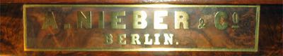 Piano merk eigendom van A. Nieber & Co., gebouwd in eigen fabriek.