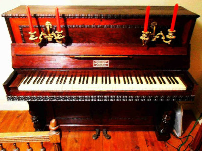 Piano merk eigendom van Van Overbergh, gebouwd in eigen fabriek.