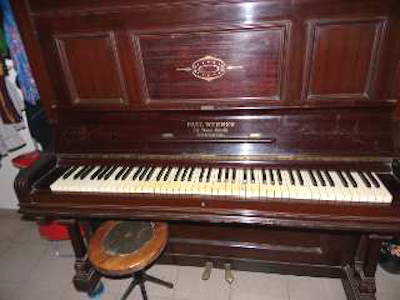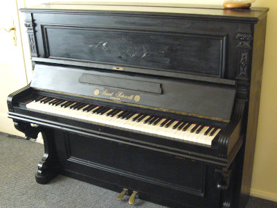 Piano merk eigendom van Paul Scharff, gebouwd in eigen fabriek.