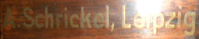Piano merk eigendom van A. Schrickel, gebouwd in eigen fabriek.