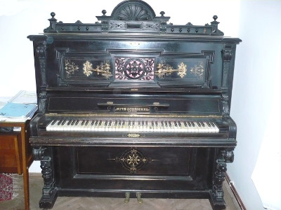 Piano merk eigendom van Otto Schrickel, gebouwd in eigen fabriek.