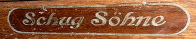Piano merk eigendom van Schug Söhne, gebouwd in eigen fabriek.