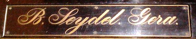 Piano merk eigendom van Bernhard Seydel, gebouwd in eigen fabriek.