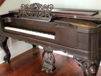 Piano merk eigendom van Steinway & Sons, gebouwd in eigen fabriek in Amerika en gedeeltelijk in Duitsland.