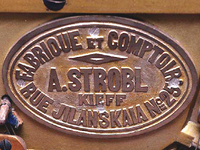 Piano merk eigendom van August Strobl, gebouwd in eigen fabriek.