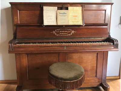 Piano merk eigendom van A.C. Sundahl, gebouwd in eigen fabriek.