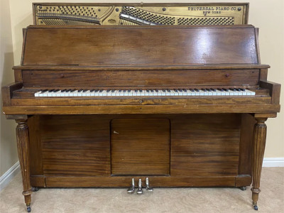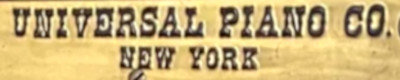 Piano merk eigendom van Universal Piano Co., gebouwd in eigen fabriek.