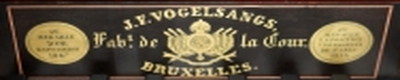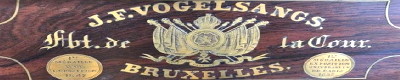 Piano merk eigendom van J.F. Vogelsangs, gebouwd in eigen fabriek.